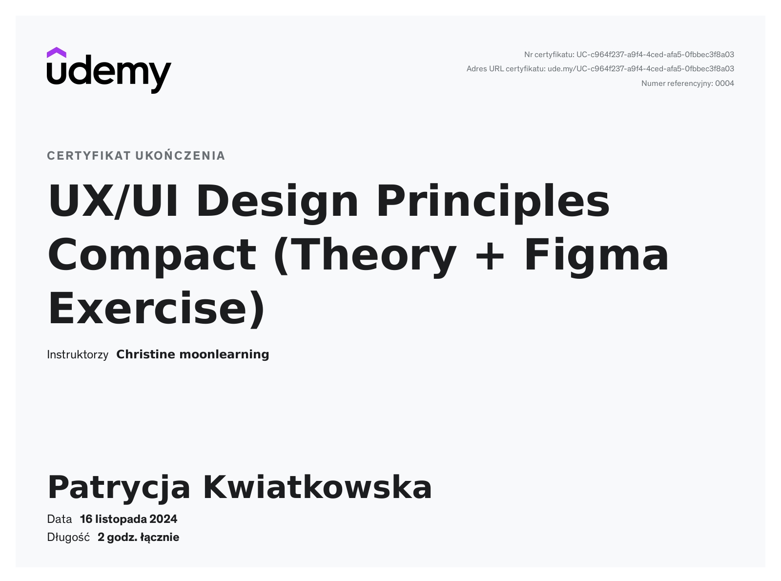 I took these courses to better understand the value of good UX and UI design. It is crucial to create applications that are convenient and enjoyable to use. The client should feel satisfied and empowered by your product — not frustrated or punished by using it.